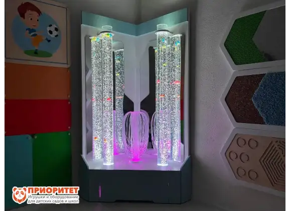 Угловая воздушно-пузырьковая колонна двойная - это профессиональное сенсорное оборудование, предназначенное для создания максимального терапевтического эффекта.Она оказывает мощное релаксационное воздействие, помогая снять эмоциональное напряжение и тревожность. Особенно эффективна для детей с РАС, СДВГ, нарушениями сенсорной интеграции и повышенной тревожностью. Колонна также способствует развитию зрительного восприятия, концентрации внимания.