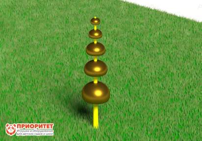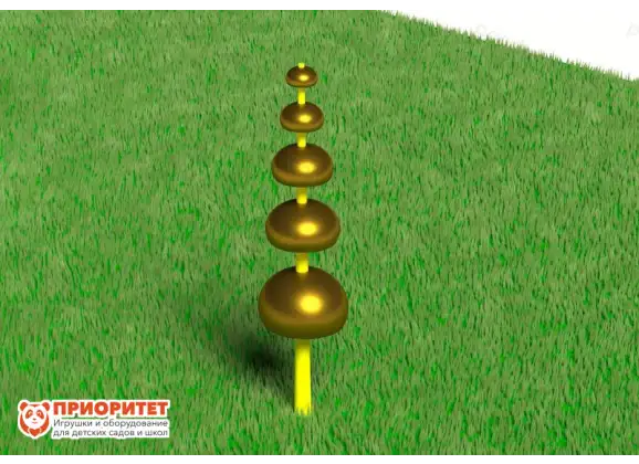 Поющая пирамида представляет собой металлическую опору, на которую надеты 5 перевернутых чаш разного диаметра. Играть на установке ребенок сможет при помощи алюминиевой палочки с пластиковым наконечником. Рекомендуется размещать конструкцию в детских игровых зонах на свежем воздухе, на территории ДОУ, во дворе частных домов или многоэтажек.