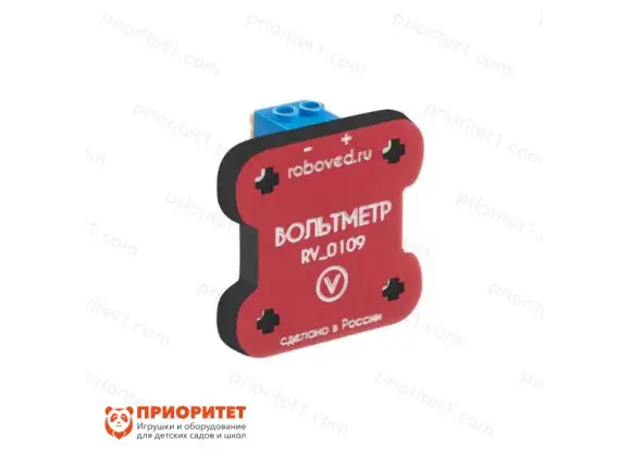 Вольтметр Roboved для EV3 – это датчик сбора данных для измерения напряжения устройства. Представляет собой небольшую деталь, которую подключают к роботу стандартным кабелем. После подключения показывает значение датчика в программе компьютера. Не требует дополнительного программирования и калибровки.