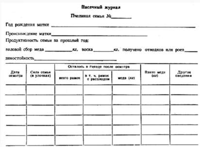 Журнал пасечного учета