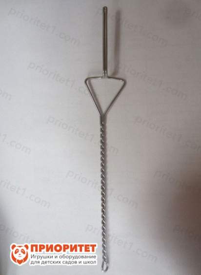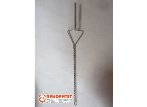 - Корпус сделан из металлической проволоки: ручка скруглена спиралью, чтобы инструмент было удобно держать в руке. Имеет колечко на основании, чтобы вешать инструмент на доску для хранения. Покрыт нержавеющим слоем. Для очистки используются специальные антибактериальные растворы.