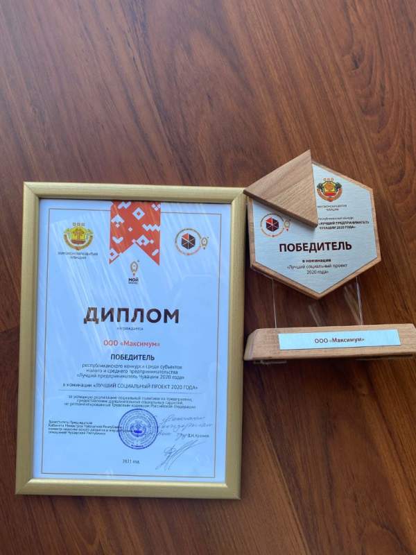 Компания «Максимум» стала победителем конкурса «Лучший предприниматель Чувашии 2020 года» в номинации «Лучший социальный проект 2020 года».